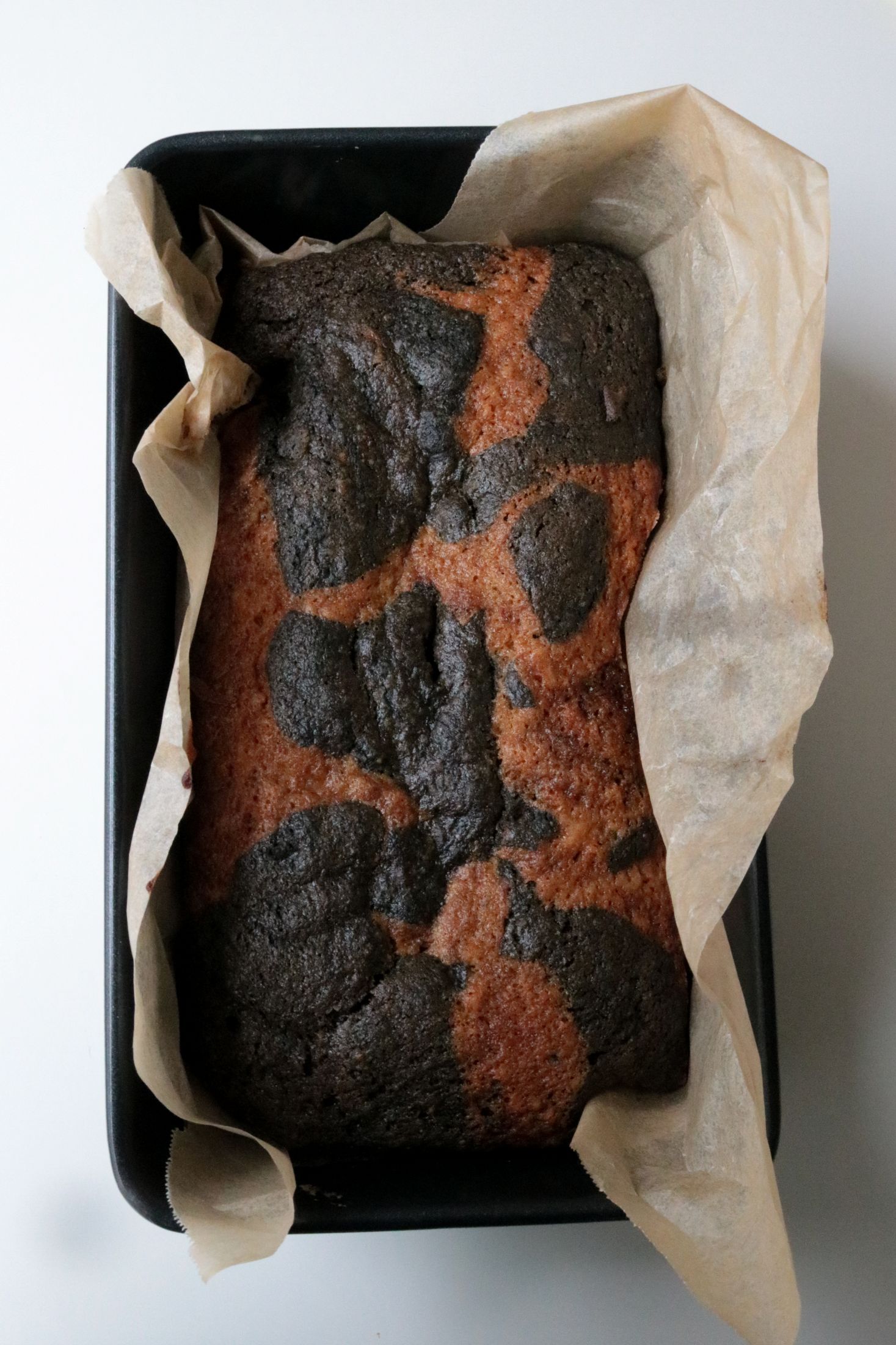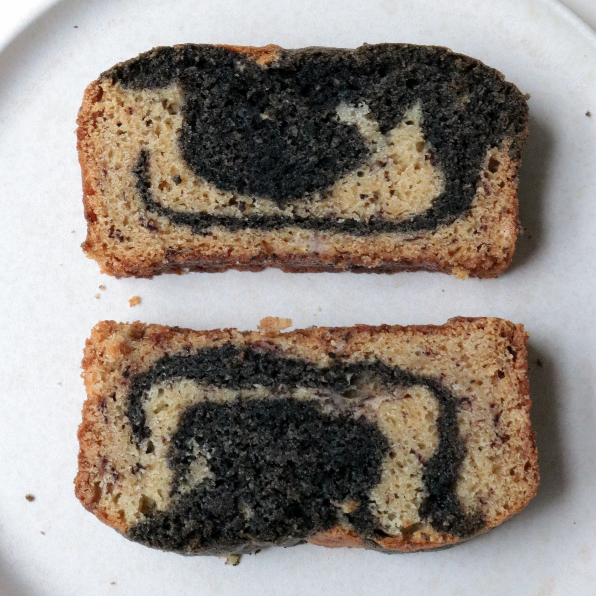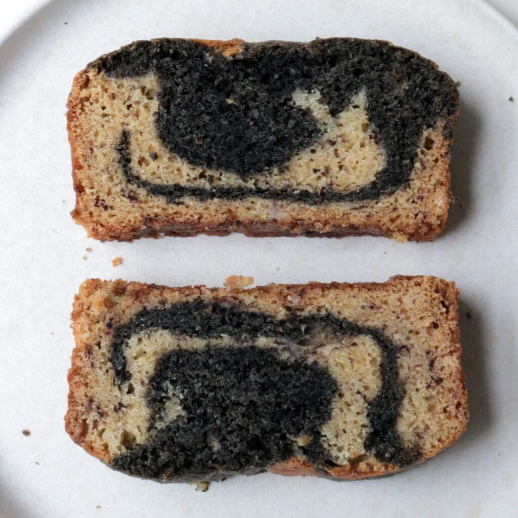 - Pour some of the brown butter batter into the prepared loaf pan, then dollop on some of the black sesame batter evenly on top. Alternate the two different batters, and swirl with a knife id you’d like.