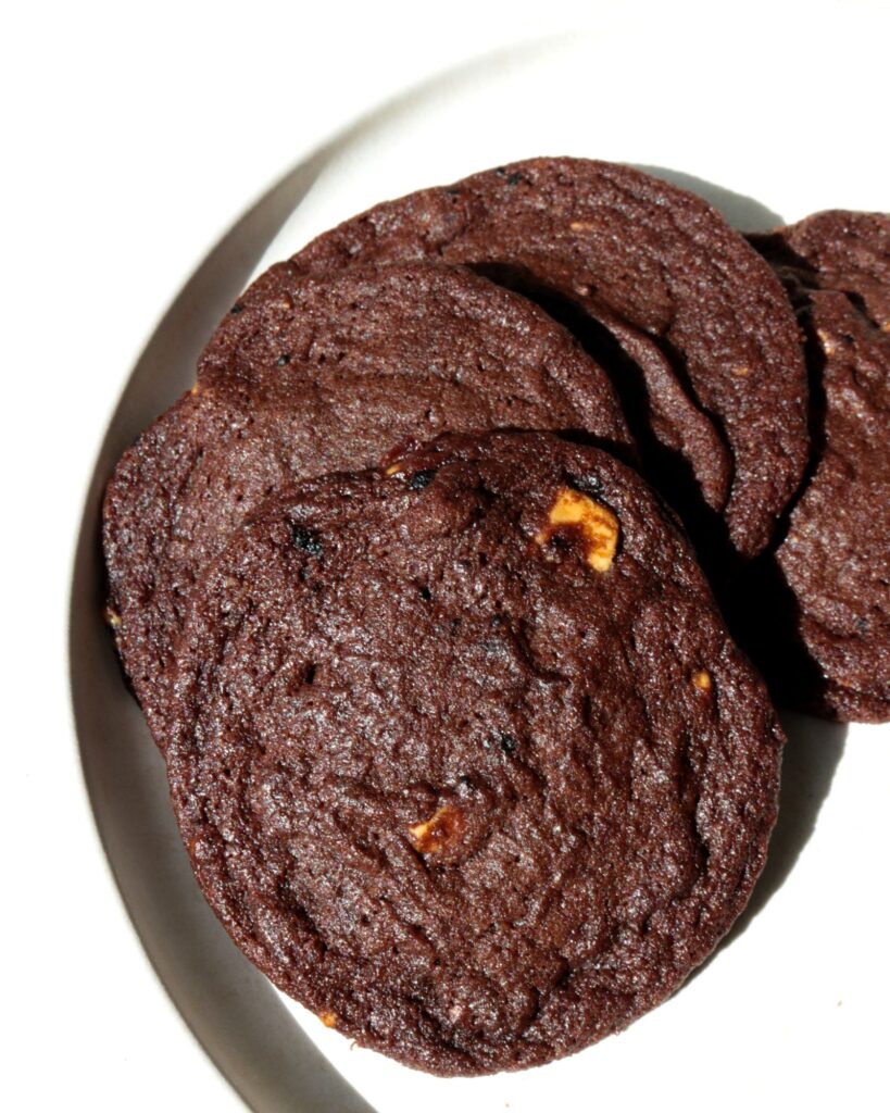 These cookies are underrated in every way, really. Because they didn’t win at the State Fair, but also because the base of the cookie is the chocolate chocolate cookie from Milk Bar that they discontinued! It was the best cookie they had! So it’s my job to bring the underrated flavors together and then praise them to the level of rating I think they deserve. Even if that rating is only known by the twelve readers of this blog.