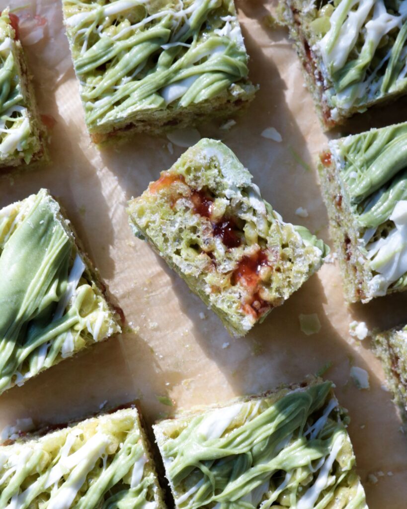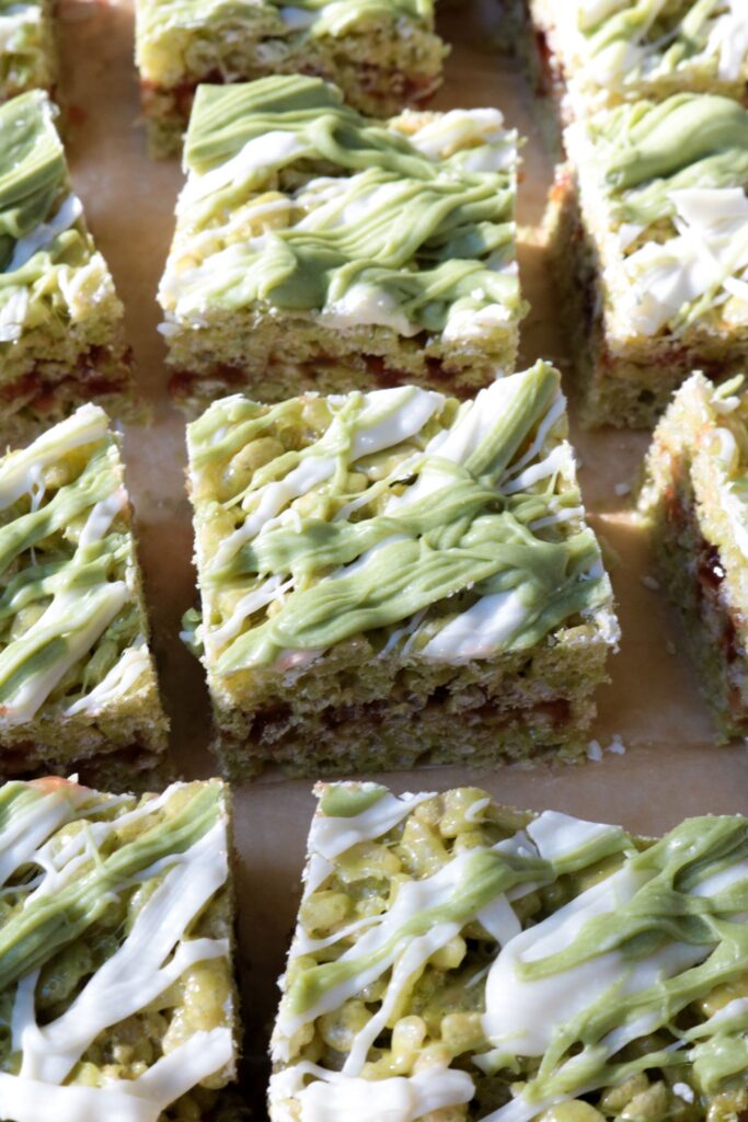 Matcha Strawberry Rice Krispie Treats
