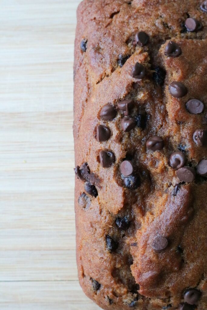 I can’t say this is the most exciting pumpkin bread in the world, but… does it need to be? Just let it be great. Let it be simple. Let it have mini chocolate chips and come in a cute little loaf. Simple joys!!