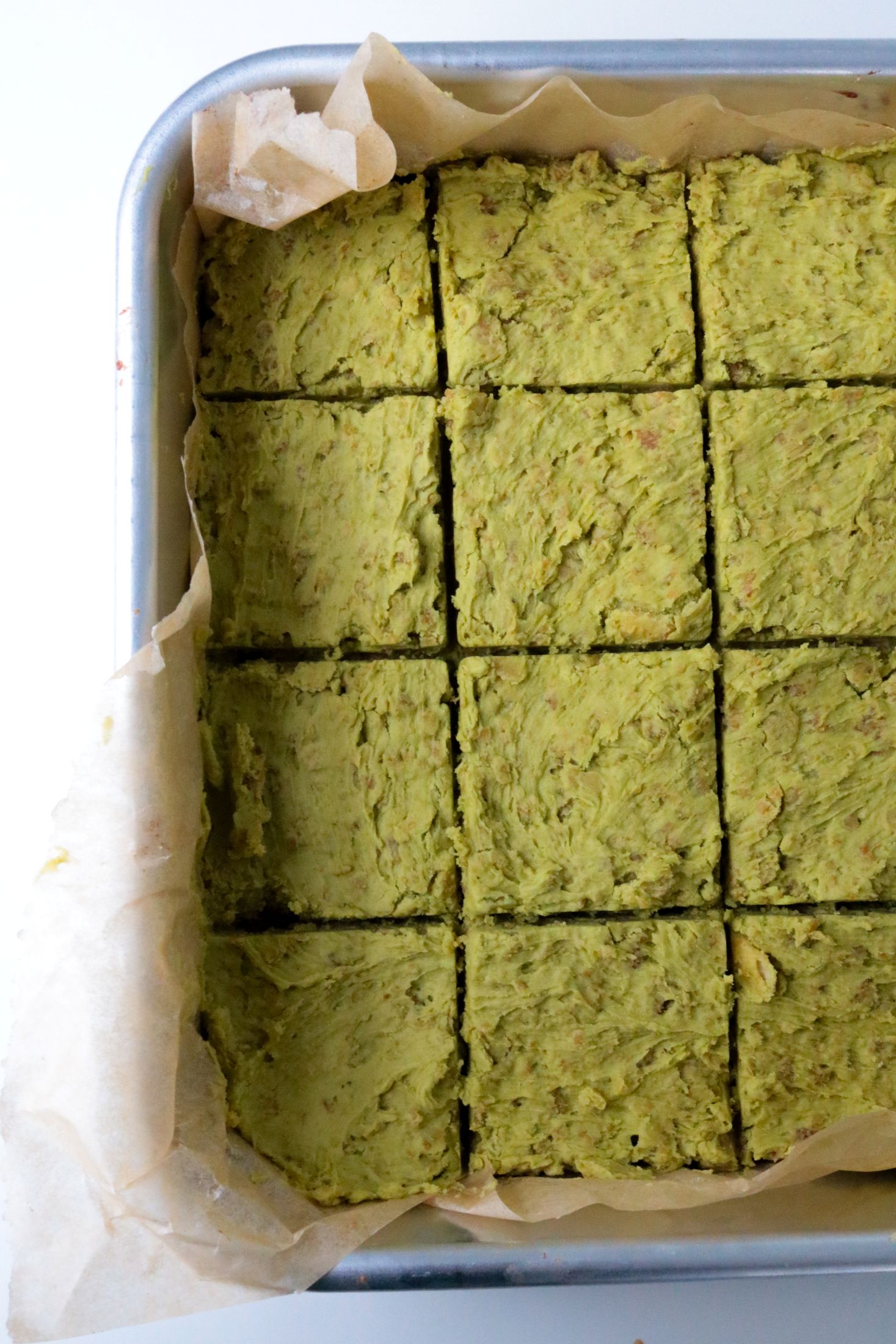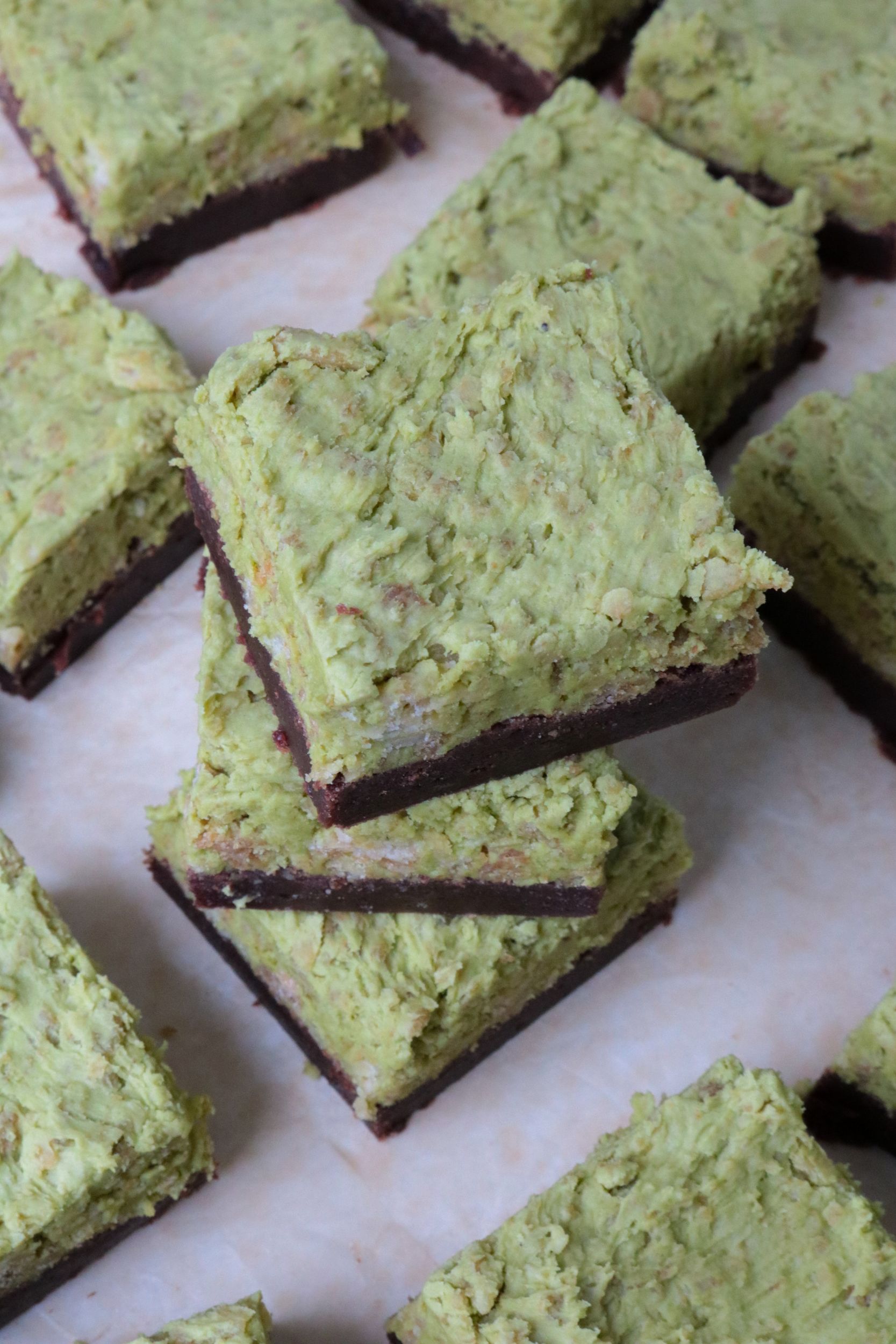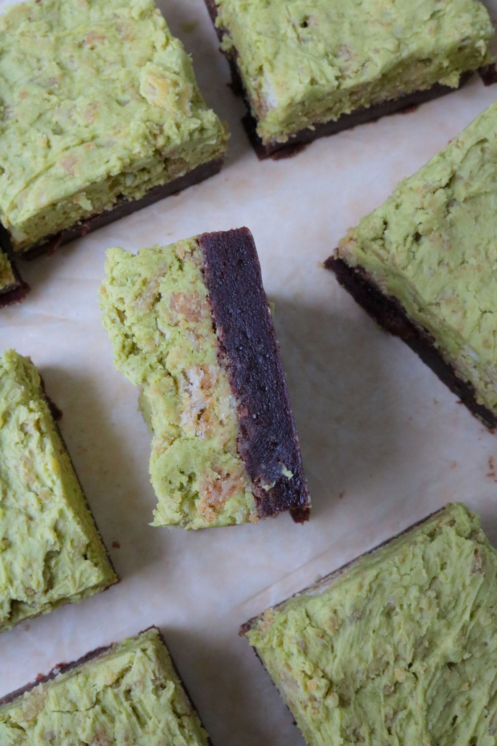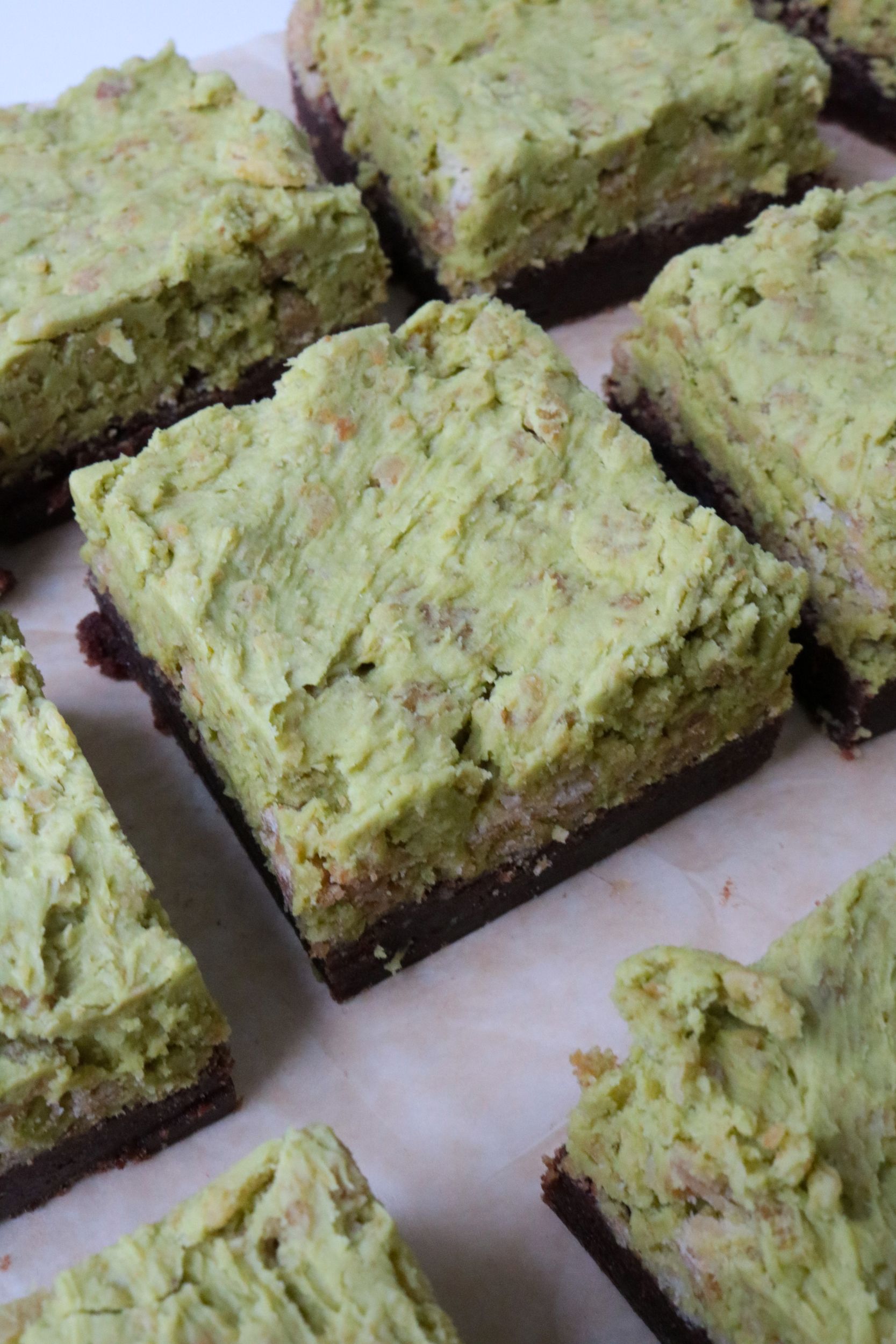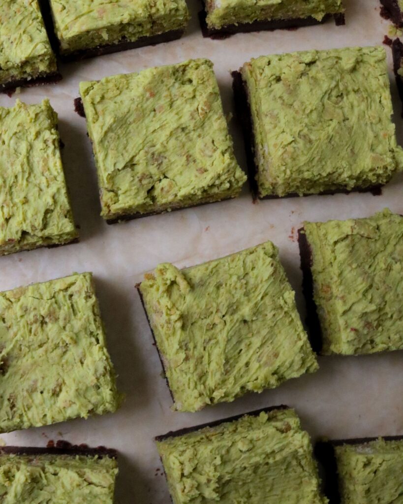 - Spread/scoop the pistachio frosting on top of the brownies, and smooth out as best you can.