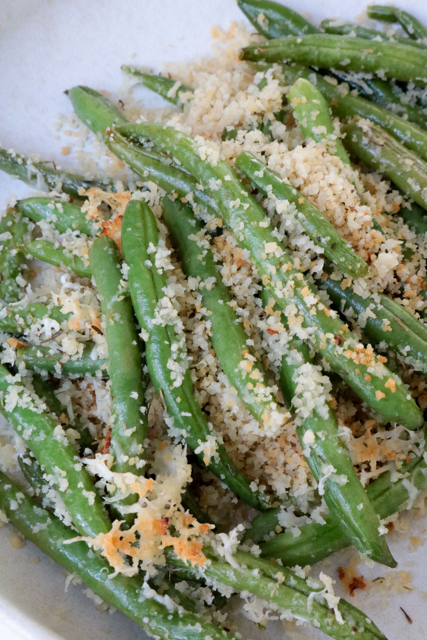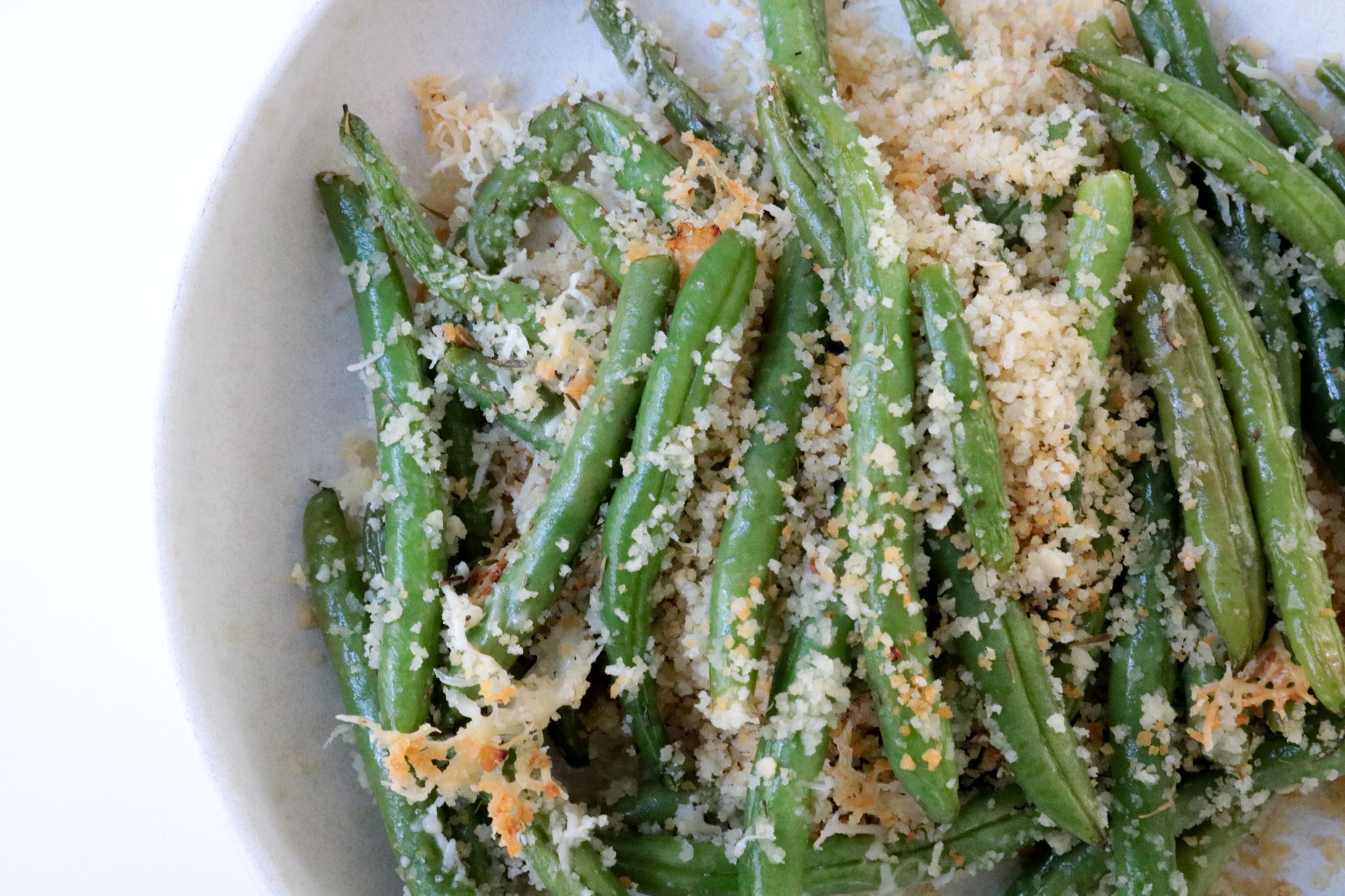 These roasted green beans felt sort of reminiscent of a green bean casserole, but much simpler and less heavy. It also reminded me of these roasted asparagus that my mom used to make that were super tasty. Roasted breadcrumbs and cheese simply… are not going to make vegetables taste worse.