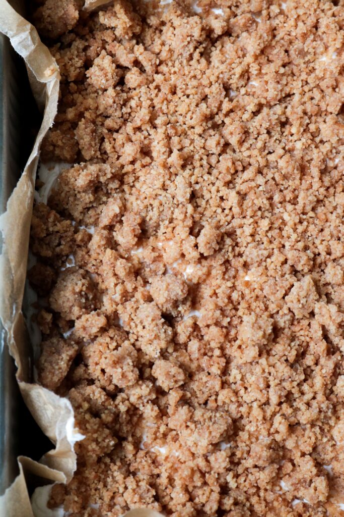 - While they’re cooling, prepare the crumb and frosting.