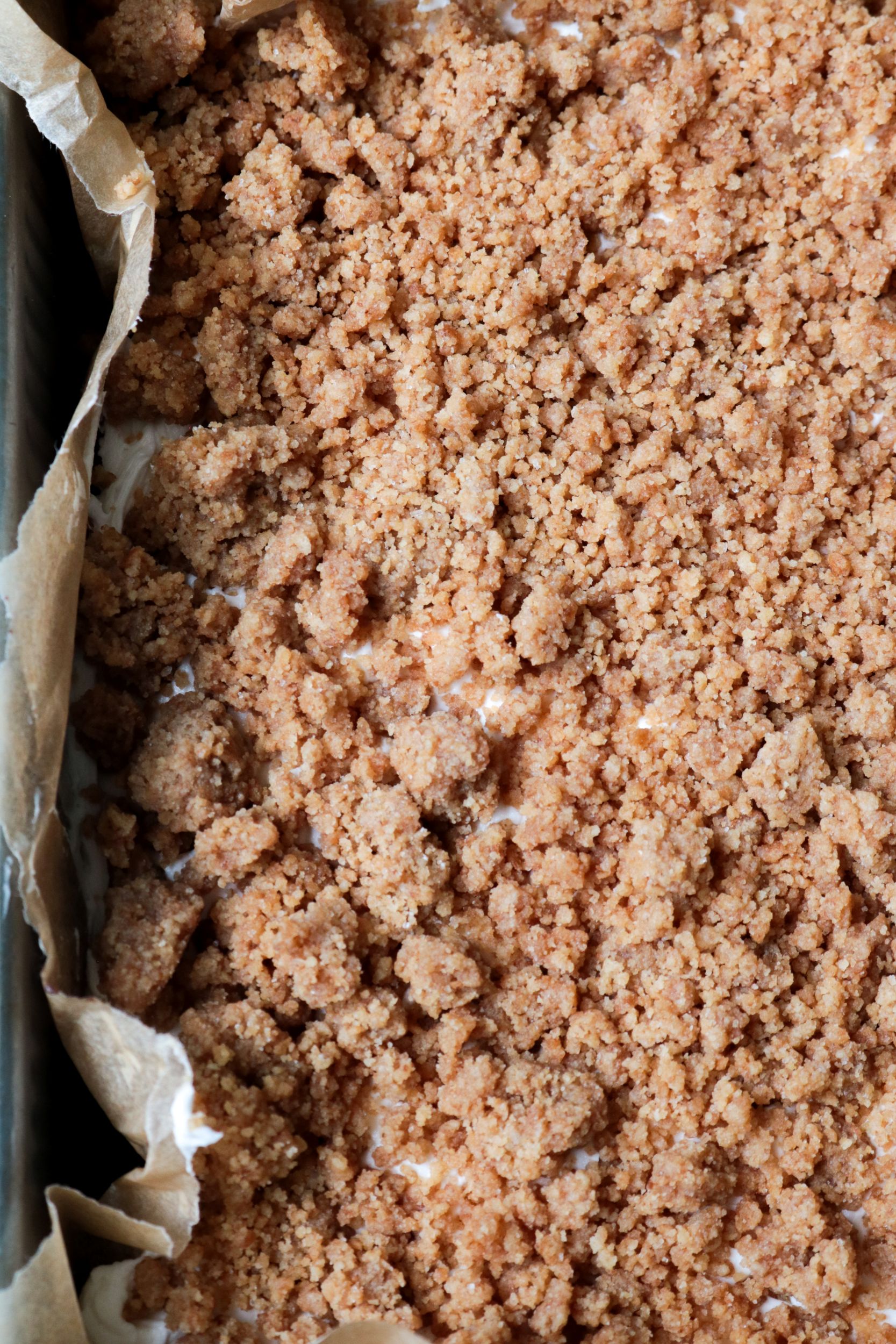 So, I made the Baked Brownie (a classic on this blog), and substituted milk chocolate for the dark chocolate. Then marshmallow frosting and graham crumb. Easy-peasy! The recipe writes itself!