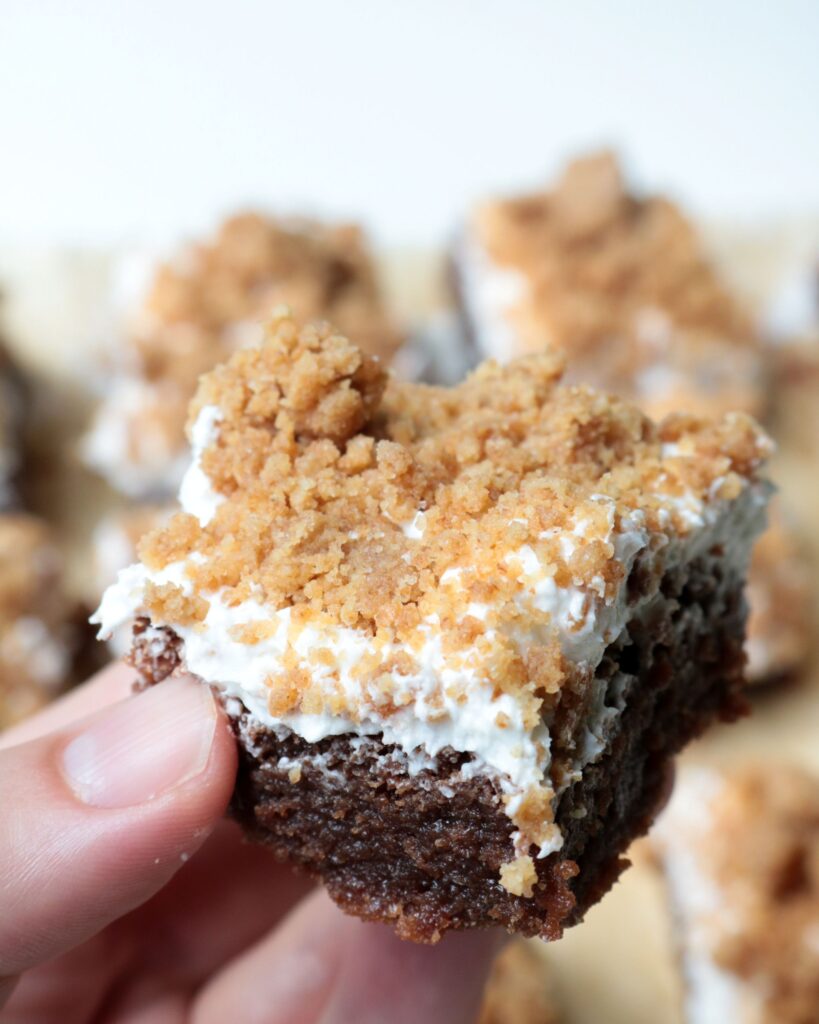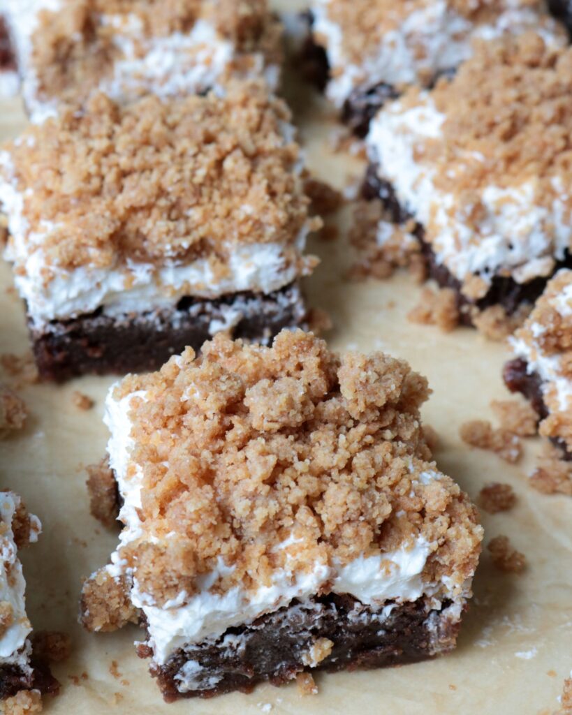 Or, well, not totally writes itself. There’s so many different ways you can combine graham cracker, marshmallow, and chocolate – even if you just do a brownie base. What about a graham crust? Or graham crumb mixed in to the brownie? Or marshmallows baked in the brownie? So many options!