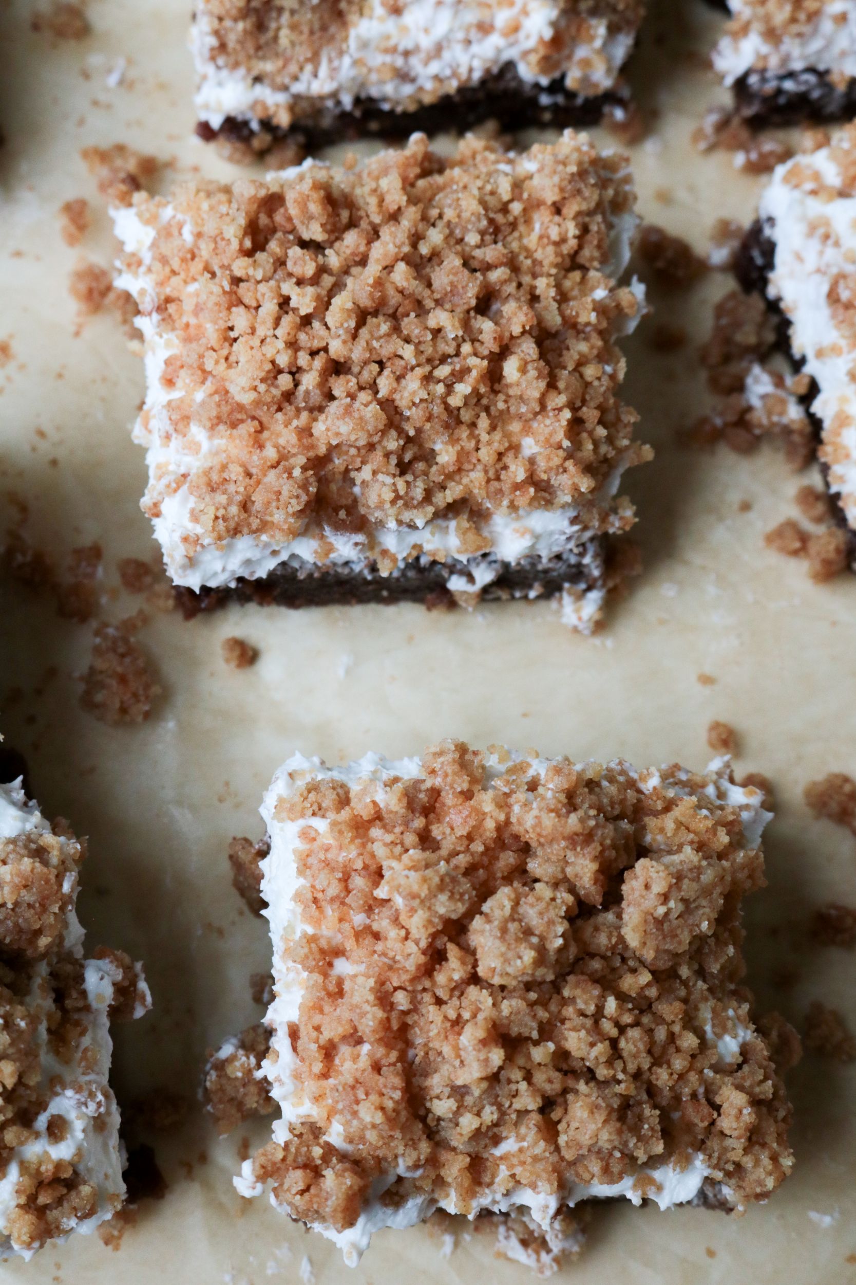 - Frost the brownies and sprinkle the graham on top.